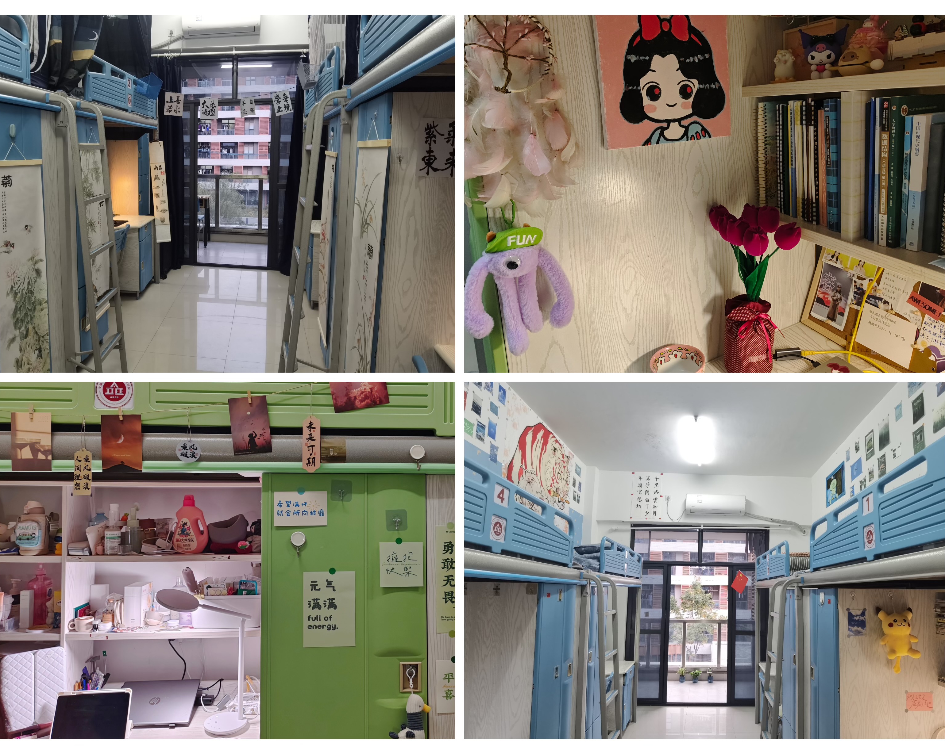 来自优等宿舍、通信222金尚阳同学表示:“作为搬迁到新校区的‘新生’,很开心学院能提供这样一次宝贵的机会设计装修自己的“家”,参与过程中,与舍友们一起谈想法、一起创建,不但增强了卫生健康观念和提升了审美水平,更增进了室友之间的感情,我们十分开心,这个小房间已经不是单纯的住宿地,它还包含我们的劳动、花费的精力与时间,并且承载着我们的梦想。”
