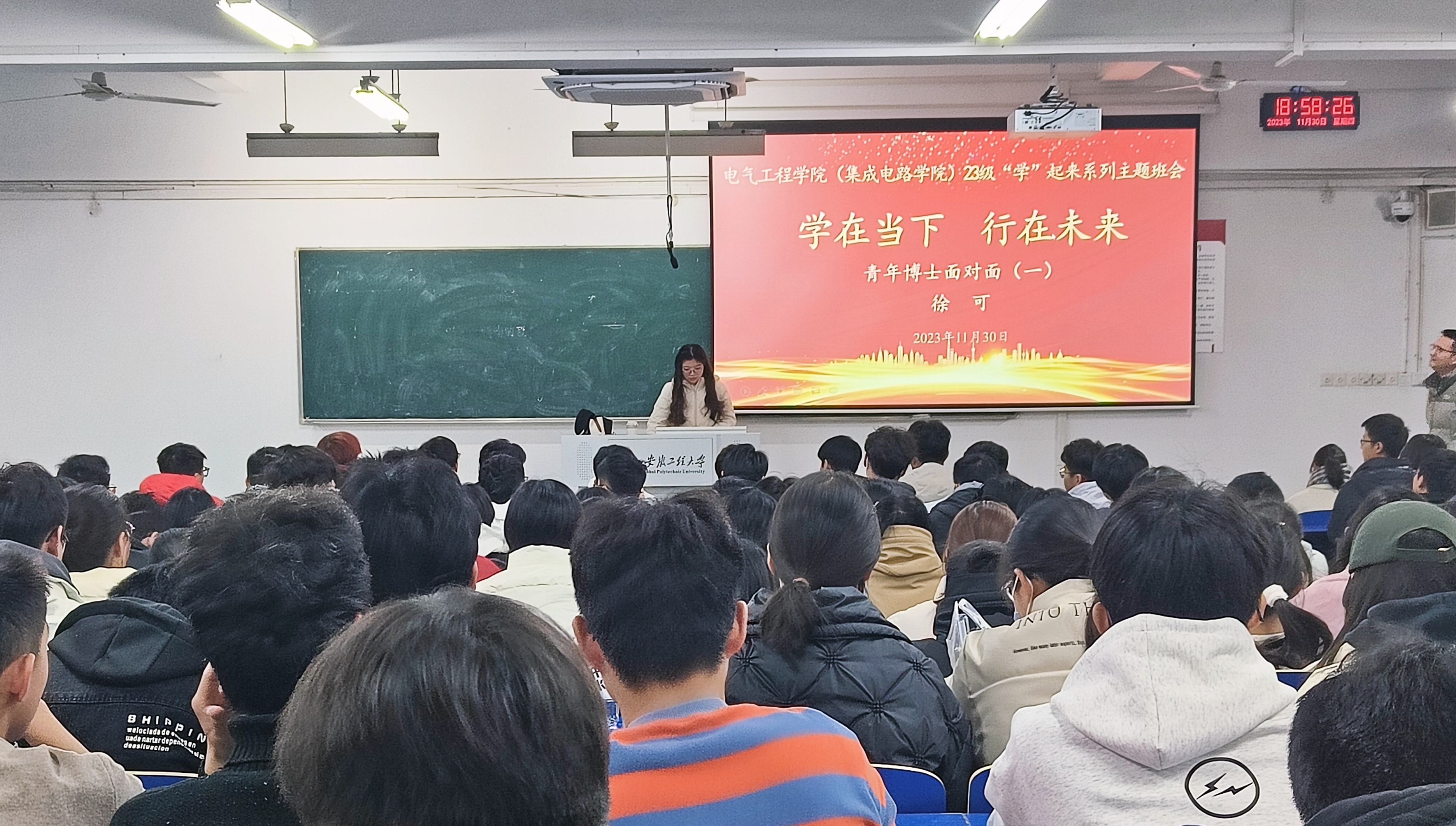 在6教111、112教室,开展“学在当下 行在未来”系列主题班会,本次班会邀请了学院青年博士教师徐可与学生面对面交流,近400名2023级本科学生参加,班会由辅导员阳岚主持。