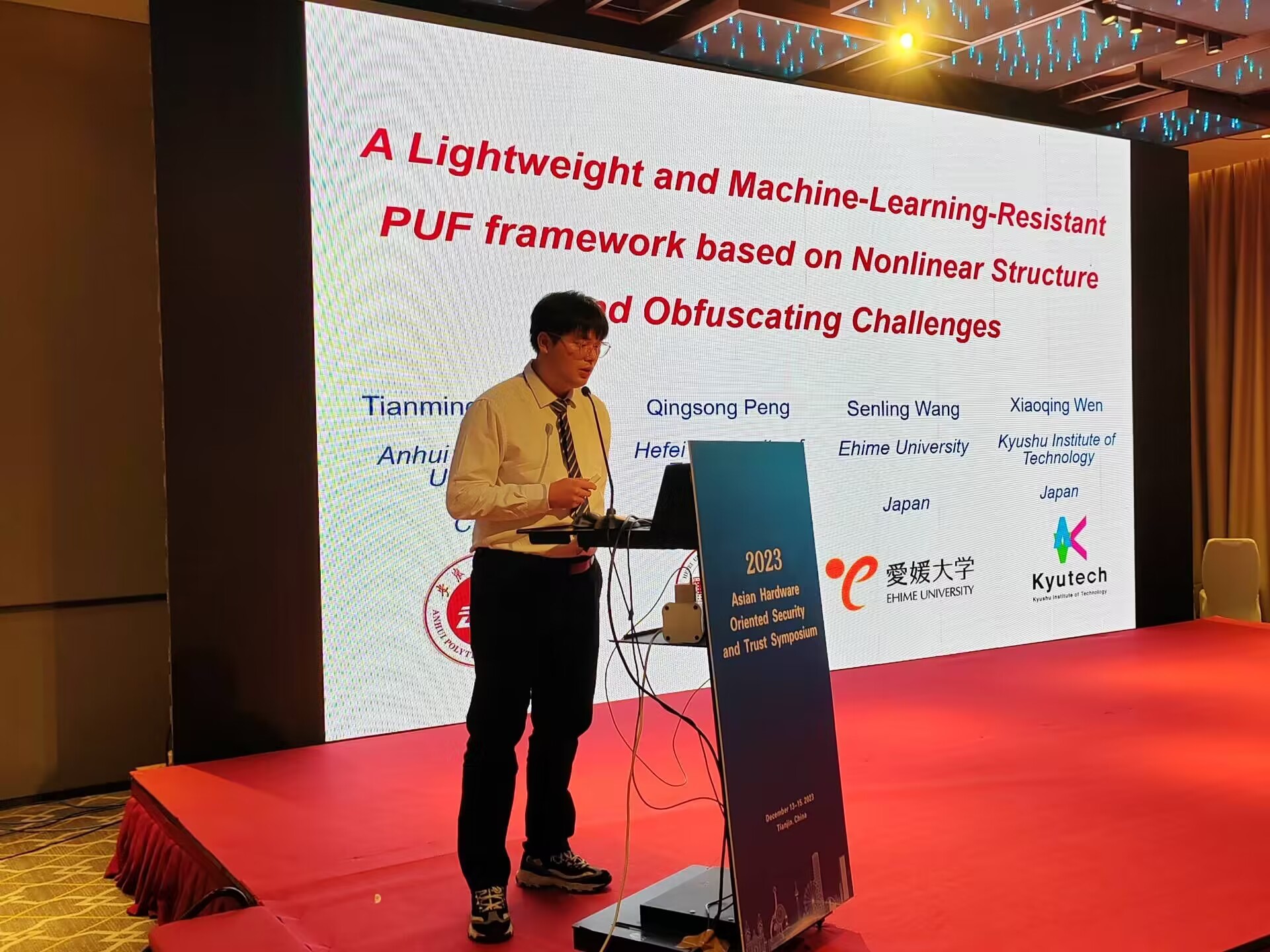 12月13日至15日,IEEE亚洲硬件安全与可信性会议(IEEE Asian Hardware-Oriented Security and Trust, IEEE AsianHOST 2023)在天津召开,我校I2CAS实验室(集成电路与系统研究所)倪天明教授团队汇报最新研究成果“A Lightweight and Machine-Learning-Resistant PUF frameworks based on Nonlinear Structure and Obfuscating Challenges”。论文的第一单位是安徽工程大学集成电路学院,合作者包括IEEE Fellow日本九州工业大学Xiaoqing Wen教授、爱媛大学Senling Wang教授。据悉,本次会议论文录用率不到33%。