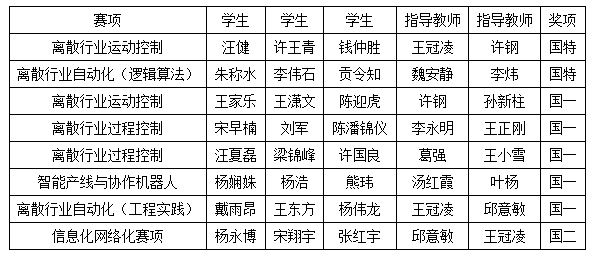 在离散行业运动控制、离散行业自动化(逻辑算法)中获得2个特等奖,在离散行业运动控制、离散行业过程控制、智能产线与协作机器人、离散行业自动化(工程实践)中获得5个一等奖,在信息化网络化赛项中获得1个二等奖。在初赛中,老澳门六合彩开奖结果